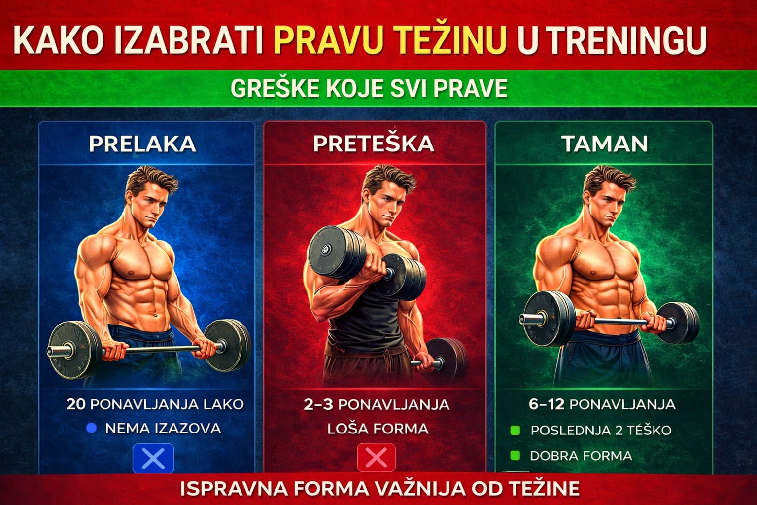 ➡️ težine se biraju da impresioniraju, ne da izgrade telo