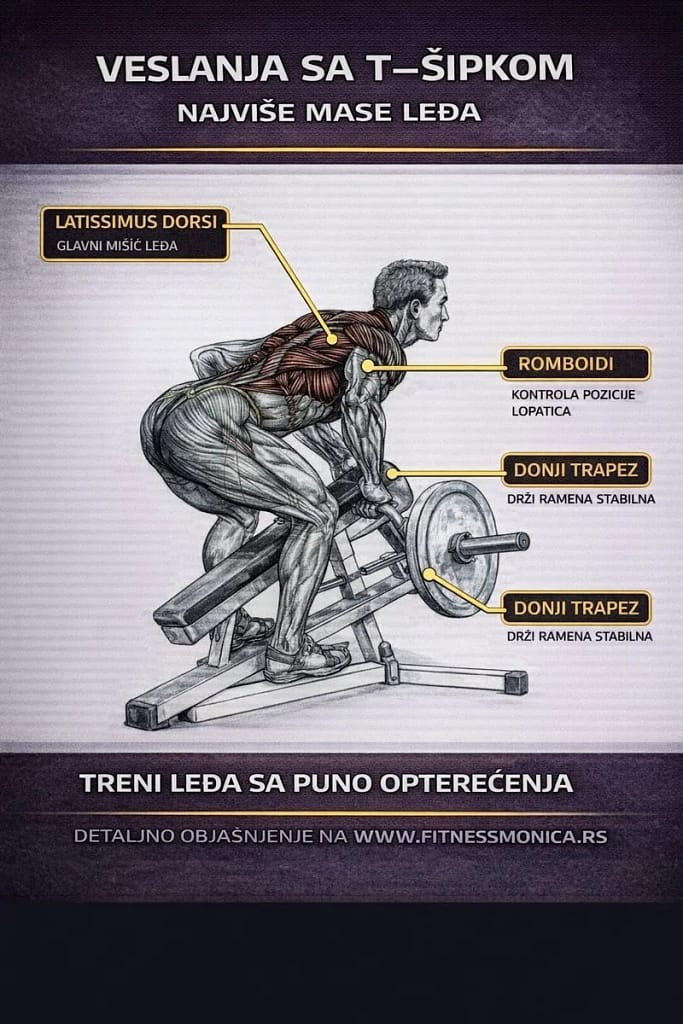 7️⃣ VESLANJE SA T-ŠIPKOM – STOJEĆI