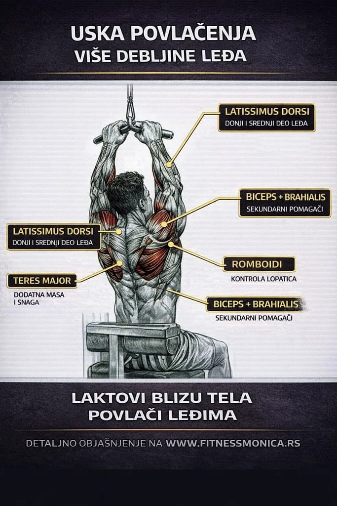 3️⃣USKA POVLAČENJA (LAT PULLDOWN – USKI HVA T)