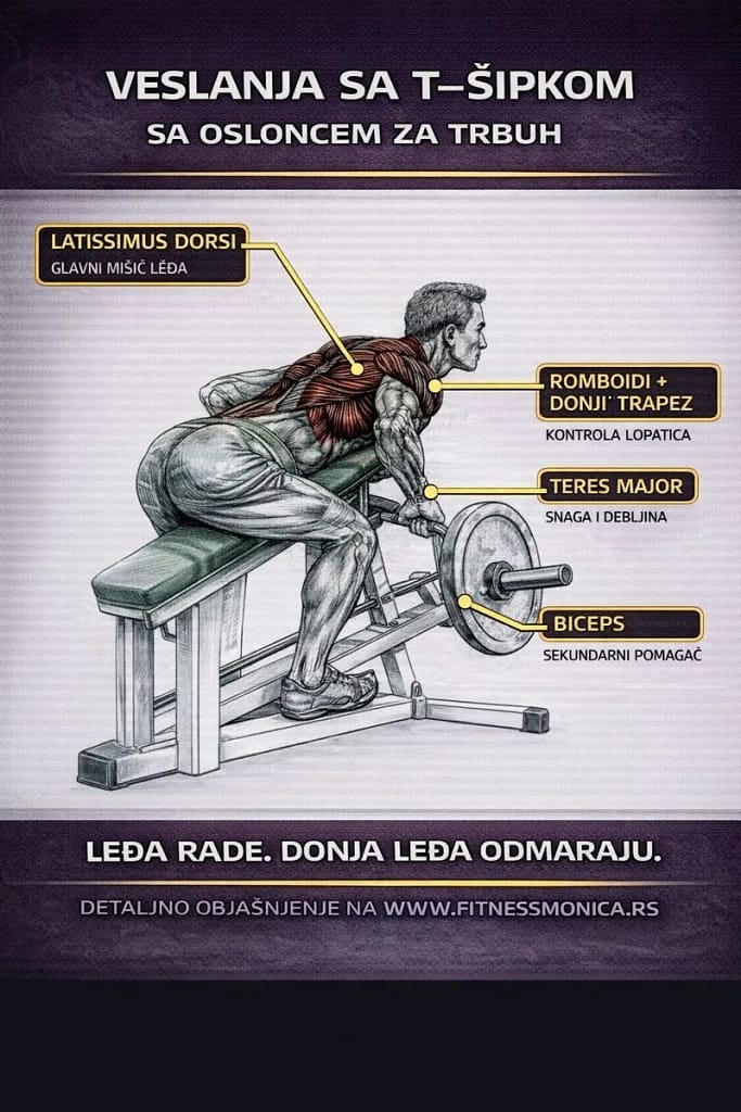 8️⃣ VESLANJE SA T-ŠIPKOM I OSLONCEM ZA TRBUH