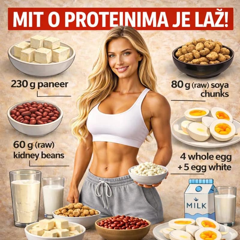 👉 150 grama proteina dnevno je moguće uneti i bez piletine i bez suplemenata, koristeći obične namirnice koje već postoje u prodavnicama.